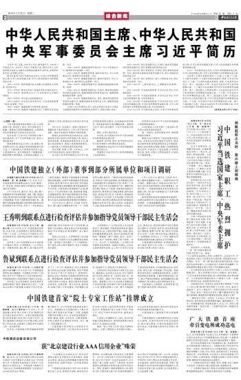 中国铁建职工热烈拥护习近平当选国家主席、中央军委主席