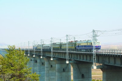 近日,中铁二十三局参建的哈尔滨至佳木斯铁路开始联调联试。该铁路全长343公里,设计时速200公里,是我国高寒地区最长快速铁路,将于8月底正式开通运营。图为检测列车通过哈佳铁路牡丹江特大桥。李亚萍 摄