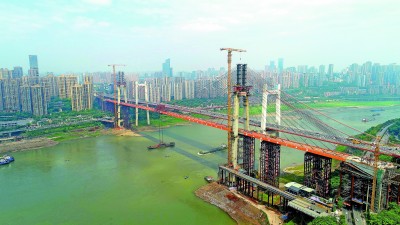 5月5日,由中国铁建大桥局承建的世界最大跨度自锚式悬索桥——重庆市鹅公岩轨道交通专用桥在长江上顺利合龙。该桥全长1650米,其中主跨为600米的双塔双索面5跨连续钢箱梁自锚式悬索,跨径为同类型桥梁世界之最。跨径的增大,对桥梁设计能力、高强度厚钢板材料性能及焊接工艺、施工能力、施工装备等提出更高要求。