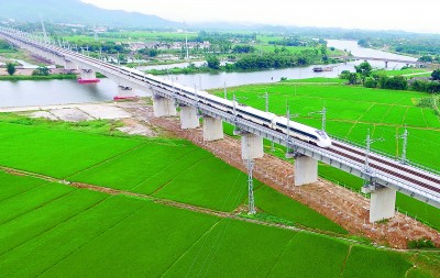 日前,深茂铁路进入联调联试阶段。承担该工程施工任务的中铁二十局自2016年开工以来,大力推行标准化管理、精细化管控、集约化建设,在确保安全质量的前提下,提前6个月完成了施工任务。图为5月10日,一列联调联试列车平稳通过该集团承建的台城河特大桥。