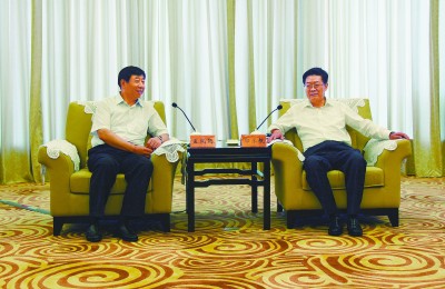 图为孟凤朝与郭永航亲切交谈。王华峰 摄