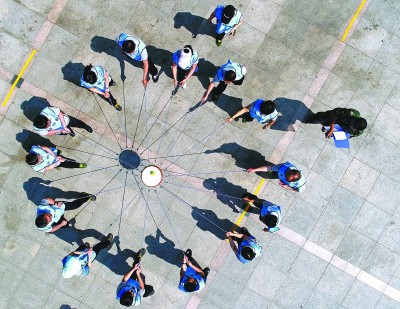 日前,中铁十四局三公司组织80余名员工在济南波罗峪拓展基地举行“扬青春风采 筑魅力铁建”为主题的拓展训练活动,培养员工的团队精神和协作意识,为中国铁建成立70周年喝彩。图为员工们正在参加“团队战鼓”项目。尹 辉 摄