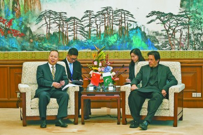 图为陈奋健在钓鱼台国宾馆会见巴基斯坦总理伊姆兰·汗。 李锦龙 摄