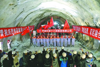 青岛地铁1号线海底隧道全长8.1公里,最低点距离海平面88米,是国内首条地铁海底隧道,也是国内最深的海底隧道和最长的地铁海底隧道,中国铁建和中铁十八局以联合体模式参与施工建设。图为11月6日,中铁十八局青岛地铁1号线海底隧道项目部参建员工欢庆隧道贯通。崔凤华 文