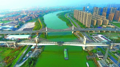 11月16日,由铁一院设计、中铁十二局承建的国内在建城际铁路无砟轨道最大跨度矮塔斜拉桥——广东省珠三角广佛环城际铁路东平水道矮塔斜拉特大桥合龙。该桥全长4869米,主跨为(96+176+96米)双塔双面预应力混凝土斜拉索,跨越东平Ⅱ级航道。它的合龙,不仅使全长35公里的广佛城际铁路桥梁形成闭合,也为明年全线如期开通奠定了基础。图为东平水道矮塔特大桥主桥。武 羽 摄