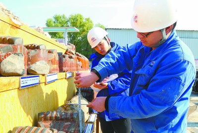 中铁十四局大盾构公司在青年员工中广泛开展比管理、比信誉、比责任、比形象、比成绩劳动竞赛活动,创造了北京隧道施工历史上单月掘进237环、474米的新纪录。图为日前该公司京张高铁清华园隧道盾构机长邱文建正在指导队员测量刀具磨损值,确保建设精品工程。 郭新璞 摄