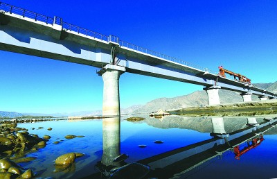 11月26日,由中铁十一局三公司参与建设的川藏铁路拉林段首座跨江大桥——贡嘎雅鲁藏布江特大桥开始铺架。川藏铁路拉林段全长435.48公里,贡嘎雅鲁藏布江特大桥是川藏铁路拉林段最长桥梁,也是首座横跨雅鲁藏布江的桥梁。此次铺架标志着川藏铁路拉林段迈出跨江第一步。图为正在铺架中的贡嘎雅鲁藏布江特大桥。俞文喜 摄
