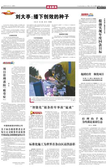 提示:作者来稿一、二版发至新闻部邮箱:E-mail:bsxwb@crcc.cn; 三、四版发至政文部邮箱:E-mail:bszwb@crcc.cn; 照片发至美术摄影部邮箱:E-mail:dalusheying@crcc.cn