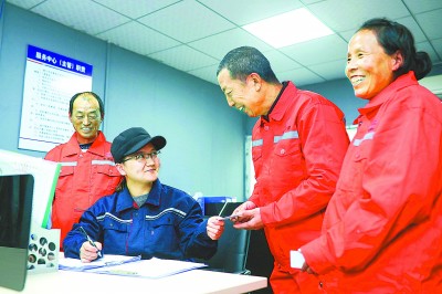 为让劳务工尽快适应工地生活,中铁十五局城建公司南京扬子江大道快速化改造三标项目部专门设立了“物业办”,负责劳务工生活区的用水用电、卫生、消防等日常事务,实现了劳务工生活区的物业化管理。图为11月30日,新进场的工人到“物业办”领取就餐卡。 刘丽娟 摄