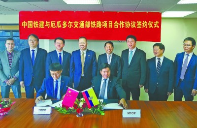 图为陈奋健与厄瓜多尔交通部副部长里卡多·保拉、安格尔·洛卡共同见证中国铁建与厄交通部签署铁路项目合作协议。疏志明 摄 |