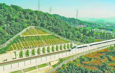 日前,杭(州)黄(山)铁路联调联试进入最后阶段,试运行动车经过中铁二十四局承建的标准化路基段。此段路基位于半山坡上,建设者坚持“环保与建设同步,建设与环保同行”的理念,在施工中采用浇灌养护、施肥保暖等方式保护边坡苗木,实现了工程建设与生态环境相融共生。