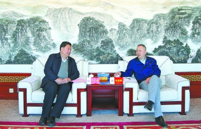 图为陈奋健与海南省国资委主任、党委书记倪健亲切交谈。张 晶 摄