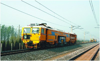 2010年,由中国铁建投资建设的国家铁路大型养路机械昆明产业基地建成投产,生产规模居亚洲第一、世界第二,我国铁路养路机械整体技术装备水平进入世界先进行列。图为2010年11月4日,铁建装备制造的DWL-48捣固稳定车在胶济铁路进行提速线路维修养护施工作业。