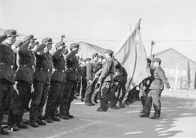 1982年3月20日,中共中央决定撤销铁道兵建制,同年12月,国务院、中央军委正式下达《国务院、中央军委关于铁道兵并入铁道部的决定》。图为1984年1月1日,铁道兵14万指战员摘掉领章帽徽,集体转业。自此,铁道兵这支部队告别了35年的军旅生涯。图为中铁十八局五公司前身铁八师四十团,在河北省迁西县引滦入津工程驻地举行告别军旗仪式。张德英 摄