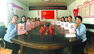 中铁十九局二公司道桥公司员工把对祖国的祝福写在纸上。 倪 威 摄