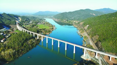 12月20日,由中铁二十五局承建的皖赣铁路浯溪口水库改线工程正式开通运营,为全国重大水利工程浯溪口水利枢纽建设扫清了障碍,将进一步提升“瓷都”景德镇的防洪能力。图为浯溪口水库改线工程昌江特大桥。郭 洮 摄
