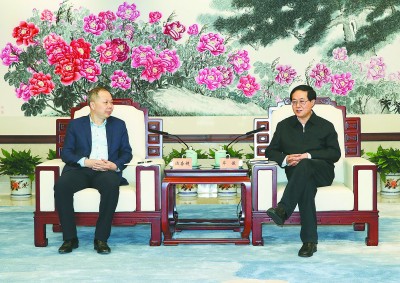 图为陈奋健与浙江省委书记车俊亲切交谈。周延武 摄 |