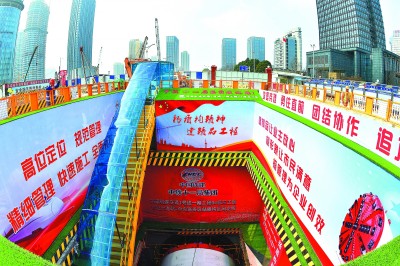 3月10日,由中铁十一局城轨公司承建的南通地铁1号线一期04标三工区项目盾构机通过各项专家评审。该项目是中国铁建在南通市建设的首个地铁项目。图为盾构机即将始发。黄诗尧 摄