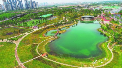 4月10日,由中铁建昆仑投资集团投资建设的成都锦城绿道项目完成了绕城高速外侧区域的建设任务,串联起锦城湖、桂溪、中和3个核心绿地。锦城绿道项目是该集团融入成都市绿色发展理念,建设“公园城市”的开篇之作。图为已经建成的桂溪生态公园。 王成龙 摄