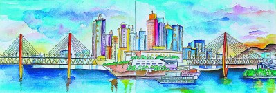 重庆东水门长江大桥(水彩画) 肖倩倩 |