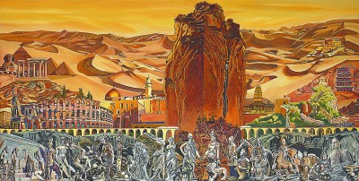 丝路千年 (油画) 吕成友 【标题书法《大美新丝路》 王秉良】 |