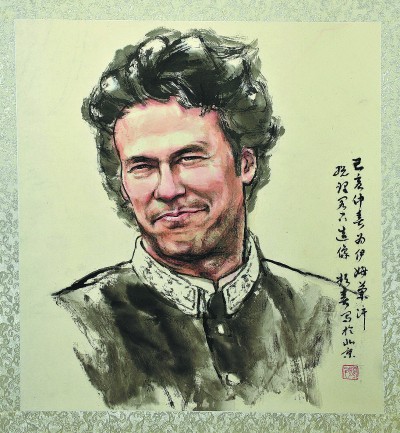 巴基斯坦总理伊姆兰·汗肖像 (国画) 蔡频春 |