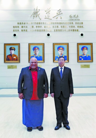 图为庄尚标与汤加副首相兼基础设施和旅游部部长塞密西·西卡合影。徐云华 摄