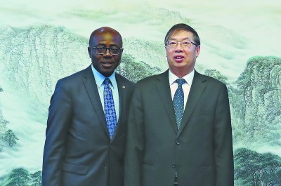 图为庄尚标与非洲开发银行高级副行长查尔斯·欧乌苏·博阿玛合影。徐云华 摄 |