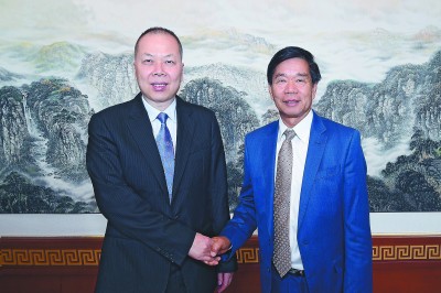 图为陈奋健与老挝人民革命党中央政治局委员、万象市委书记兼市长库派吞亲切握手。李锦龙 摄 |