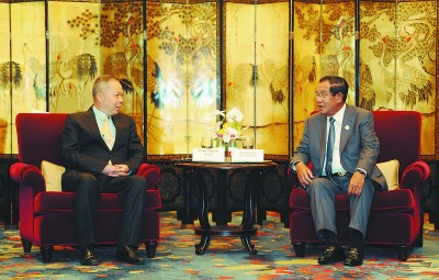 图为陈奋健与柬埔寨首相洪森亲切交谈。李锦龙 摄 |