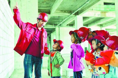 5月28日,中铁十六局城发公司科尔沁马城项目部开展项目开放日活动,把职工子女接到爸爸妈妈身边,让他们和父母度过一个特殊的“六一”儿童节。图为项目职工给孩子们介绍工程施工知识。高 飞 摄