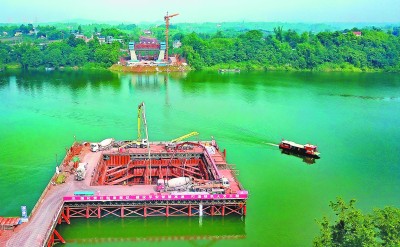 近日,中铁十二局在重庆市合安高速公路渠江特大桥施工中,采取严密防护措施,在江面上搭建了2290平方米的施工平台,使用锁扣式钢管围堰,做到基坑混凝土浇筑不漏浆、平台物件不落水、水面无漂浮物、零污染,保护了渠江的一池清水,受到沿江群众称赞。武 羽 摄