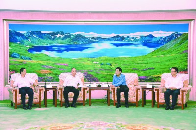 本报长春6月21日讯(通讯员曹建强 孙 瑶 记者陈 雷)6月19日,中国铁建党委书记、董事长陈奋健在长春会见吉林省委书记、省人大常委会主任巴音朝鲁,省委副书记、省长景俊海,双方就进一步深化战略合作,推进重大基础设施建设项目实施,助力东北全面振兴等交换意见,并达成共识。中国铁建党委常委、副总裁李宁,副总裁王立新,吉林省委常委、省委秘书长张安顺,省委常委、长春市委书记王凯,副省长侯淅珉,省政府副秘书长吴胜丰、邱鹏会见时在座。