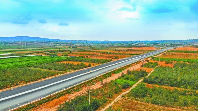 黄(龙)蒲(城)高速公路全长80.09公里,是陕西省交通规划主骨架网“六纵五横”中的主要组成部分,对陕西省实现 “县县通高速”目标具有重要意义。为助力沿线的黄龙、洛川尽早实现致富,中铁二十局在建设中充分整合资源,加快施工进度,全力冲刺通车目标。图为黄蒲高速公路蒲城至白水段率先完成路基底层沥青摊铺。宋永钊 摄