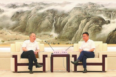 图为陈奋健会见浙江省委副书记、宁波市委书记郑栅洁。文 雄 摄 |