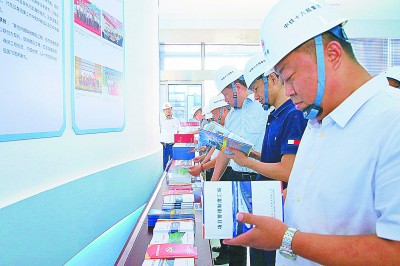 中铁十六局郑许市域铁路工程指挥部党工委通过管理标准化、党建标准化“双标共建”,促使党建引领与生产经营深度融合。该项目先后获得“河南省建筑业绿色示范工程”、 许昌市“先进基层党组织”等荣誉,成为该集团“双标共建”的典范。图为日前该集团党委组织各单位领导干部到郑许市域铁路指挥部学习“双标共建”经验。邓昆伦 摄