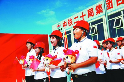 国庆期间,中铁二十局市政公司通过开展“歌唱祖国”“我为祖国送祝福”等活动,庆祝中华人民共和国成立70周年。图为员工齐声歌唱《我和我的祖国》。许 岗 摄