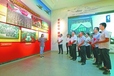 近日,中铁城建所属总承包公司机关党支部组织全体党员开展“追寻红色印记 牢记入党初心”主题活动。他们通过重温入党誓词,参观秋收起义文家市会师旧址以及历史陈列馆等形式,进一步激发机关党员干部干事创业激情和爱国爱企情怀。图为机关党员参观秋收起义历史陈列馆。易世明 摄
