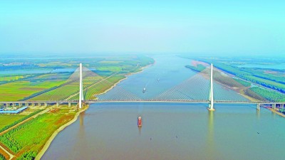 日前,经过近4年努力,由中国铁建大桥局一公司参建的世界第七大斜拉桥——湖北石首长江公路大桥建成通车。该桥主跨820米,是江汉平原和洞庭湖平原腹地的一条南北向快速通道,对于改善长江两岸8个县市区的交通状况,带动石首、江陵等城市及长江两岸经济社会发展等具有十分重要的意义。谷绍元 摄