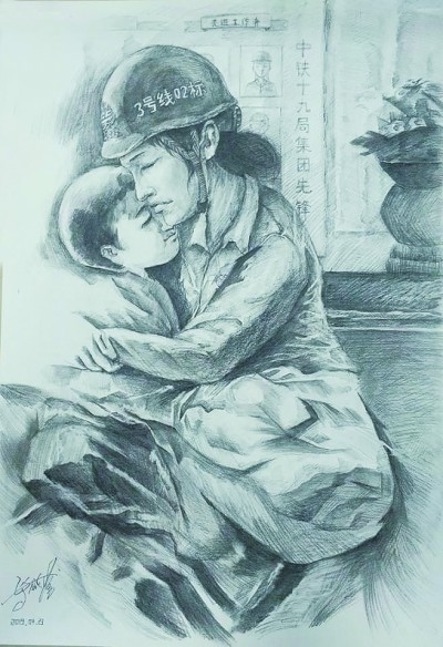 母子情 (素描,第七届书香铁建女职工书画作品)