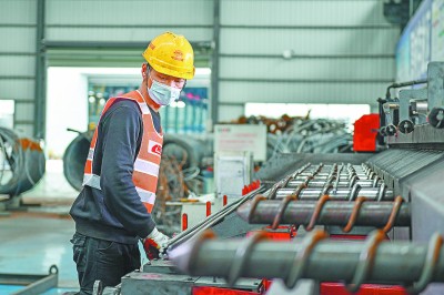 10月21日,国内生产规模最大的地铁管片厂——中铁二十二局建筑构件公司生产下线地铁管片顺利突破1万环大关。该公司通过引进智能机械化系统,生产效率提高了7倍,节省劳动力60%。目前,该公司施工机械智能化率达40%,生产的管片合格率100%,优良率超过95%。图为施工人员正在操作智能钢筋加工系统。桂天奇 摄