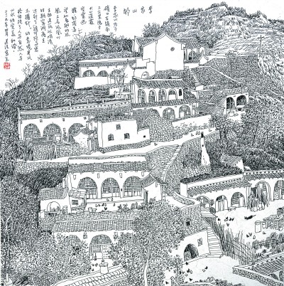 李家山屯(白描) 李建设 |