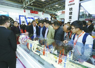 10月30日至11月2日,第十八届中国煤炭采矿技术交流及设备展览会在北京举行。铁建重工参展的矿用TBM、矿用凿岩台车、矿用湿喷台车、锚杆台车等煤矿系列装备吸引众多观众“眼球”。图为观众参观矿用TBM模型。武 劲 摄