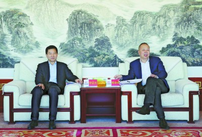 图为陈奋健与陕西省副省长、宝鸡市委书记徐启方亲切交谈。许 良 摄 |