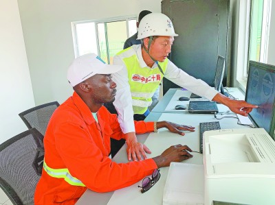 中铁二十局采用EPC模式建设的安哥拉奎托供水工程,是安哥拉比耶省目前最大最完善的供水项目。该工程交付运营以来,中铁二十局除负责水厂正常运营维护工作之外,还肩负起比耶省自来水公司员工的上岗培训任务。图为11月9日,中方项目技术人员指导安哥拉自来水公司员工熟悉中控操作流程。强星星 摄