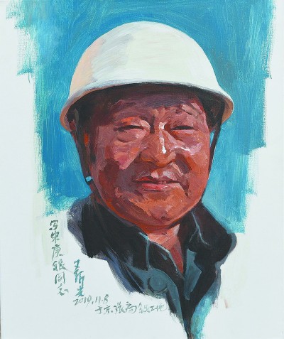 京张高铁建设者写生 (油画) 李文龙 |