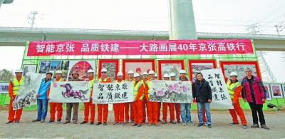 “智能京张,品质铁建——大路画展40年京张高铁行”系列活动工地画展开幕式在中铁十八局京张高铁康庄三线桥现场举行。 |