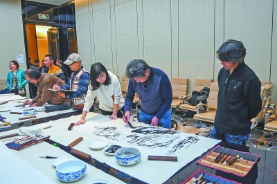 在“智能京张,品质铁建——大路画展四十年京张高铁行”系列活动书画笔会现场,徐里、陈大洋等领导题词、寄语勉励中国铁建京张高铁建设者和大路画家们。 本版摄影:王会堂 伍振 郝文 刘超 王强强 胡义 高鹏飞 |