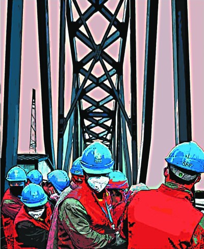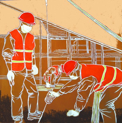 防疫不放松,复工不懈怠 (版画) 中铁建电气化局 简 琼 |