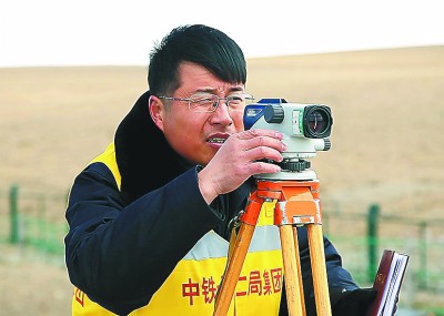 图为李林在多年冻土区进行路基沉降观测。杨 斌 摄 |